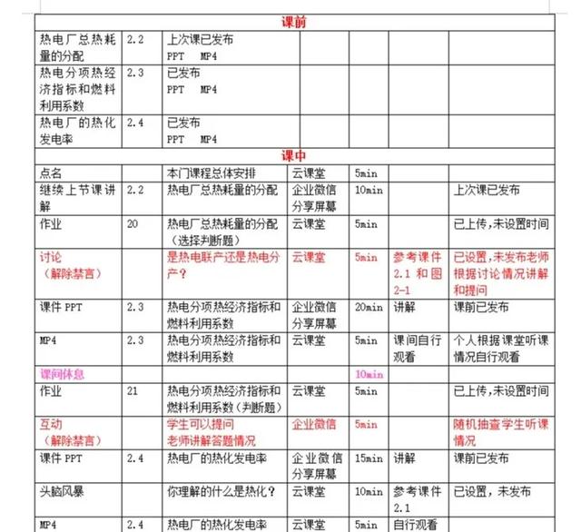 本學期我講授的課程是《熱力發電廠》,熱動1801/02/03/班,共 67人,采用了云課堂+企業微信+微信群的教學手段。云課堂(智慧職教)是我一直使用的線上教學平臺,比較熟悉,但是對于企業微信直播平臺本人比較陌生,由于年齡的原因,以前對網絡直播也比較抵觸。這次面對突如其來的疫情,受到了一次最真實最深刻的愛國主義教育,作為一名普通的教師突然感覺自己的任務很重很神圣,我也可以不僅僅躺在家里為祖國做貢獻了,我可以在家給我的學生上課了,可以讓他們停課不停學了。因此在看到疫情沒有緩解,估計得延遲開學的情況下,于2月15日開始準備線上課程。