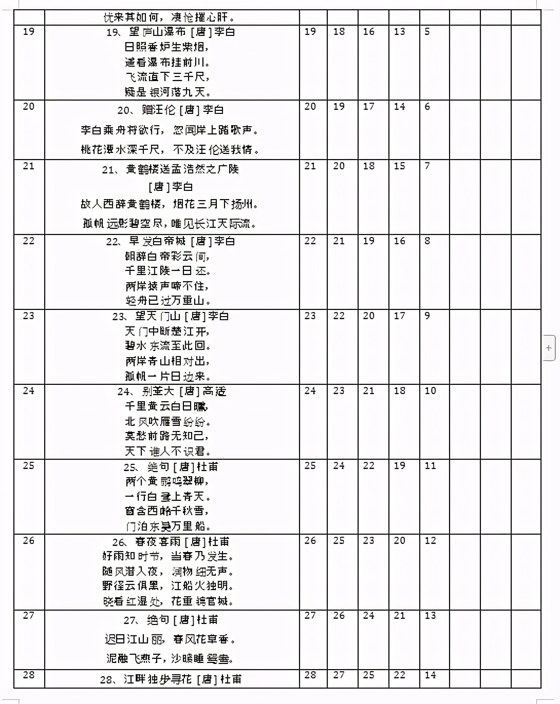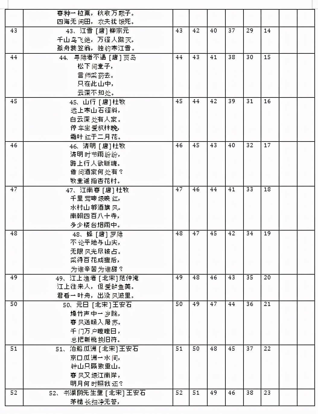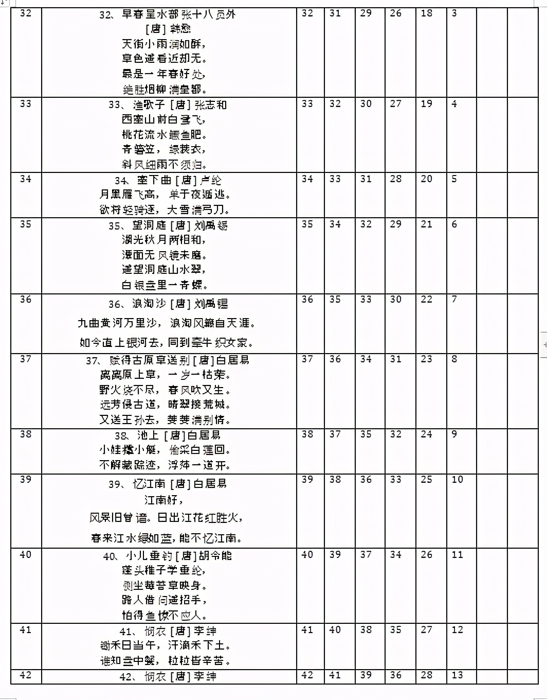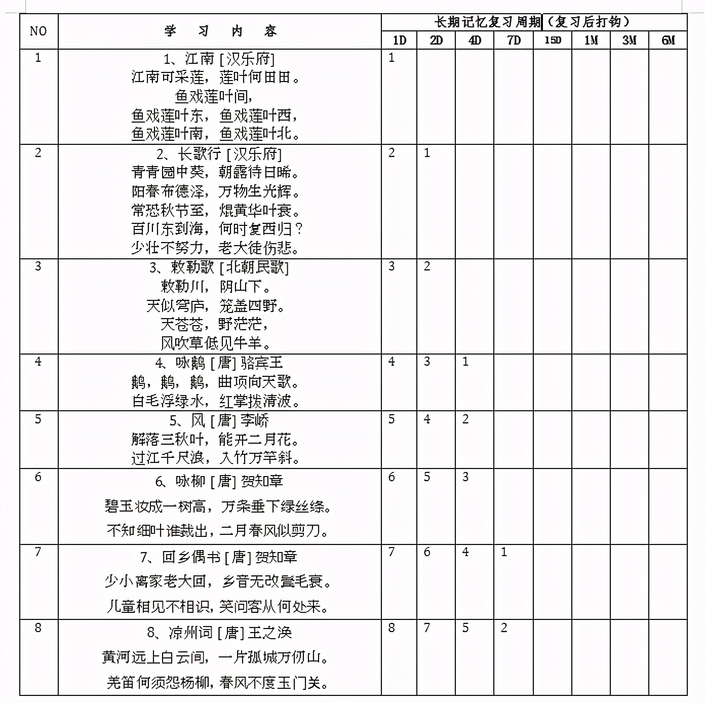 這份艾賓浩斯的遺忘曲線表格,我們家孩子在使用此表格進行古詩背誦,雖然不能每天都根據此執行完成,但是大體的計劃能執行下來,背誦效果非常好的。