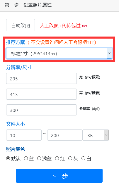 此外,還可以一步到位設置照片K大小、照片背景顏色(智能換照片底色)