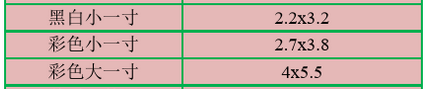 都是300dpi分辨率哦,其他分辨率再換算一下就行了其他不太常見的尺寸換算關系,如小1寸、大一寸: