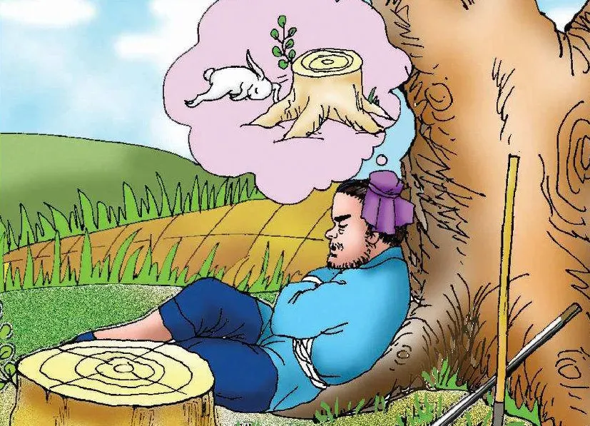 《韓非子·五蠹》宋人有耕田者,田中有株,兔走觸株,折頸而死,因釋其耒而守株,冀復得兔。兔不可復得,而身為宋國笑。