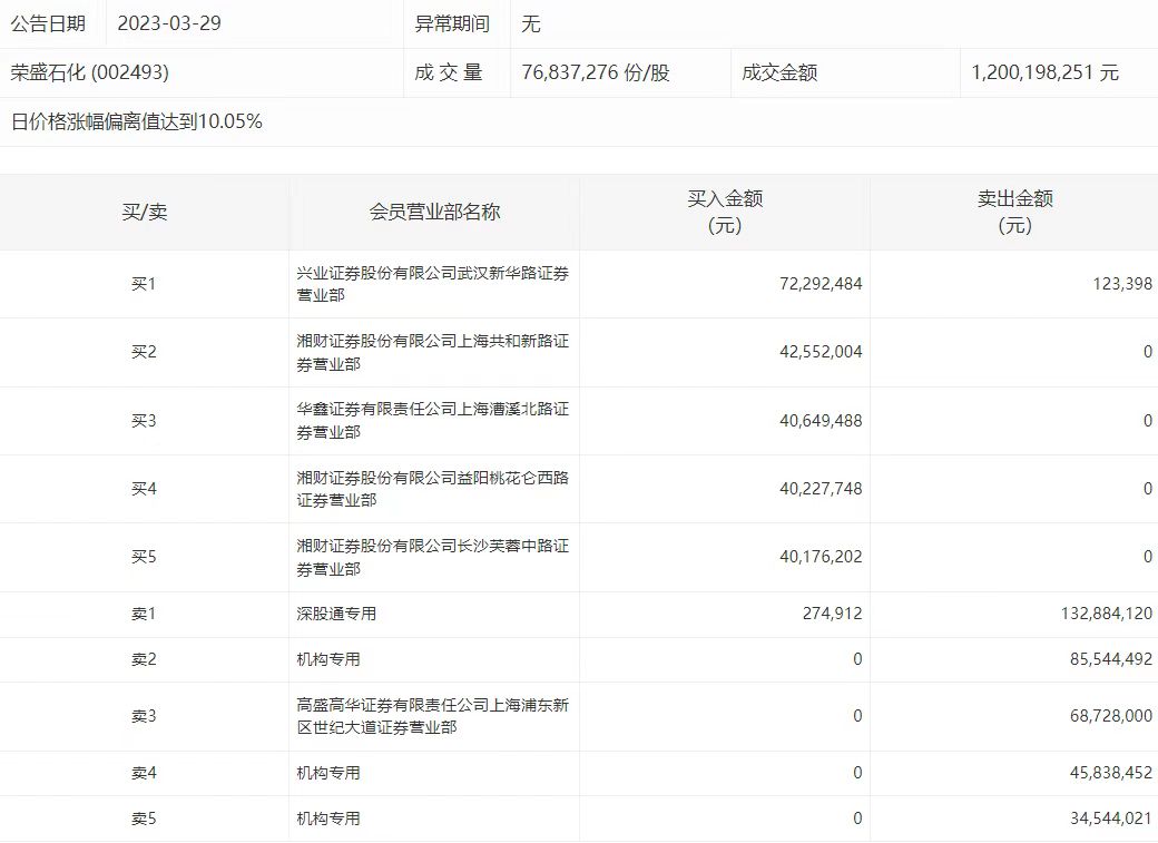 3月29日,榮盛石化再度漲停,截至收盤,該股報15.62元,成交額12億元。近3個交易日已累計上漲超30%。
