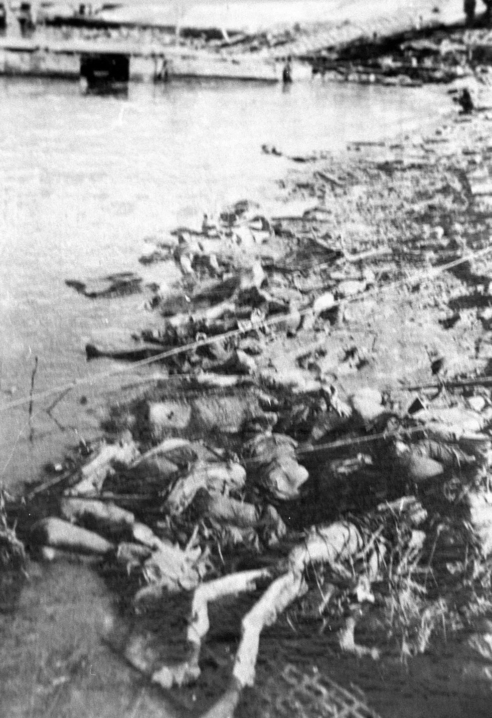 日軍將被殺害的南京市民投入長江。圖片來源:新華社