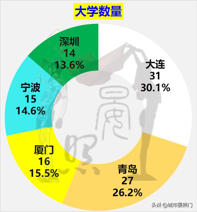 眾所周知,科教是一座城市的核心競爭力,堪比城市“最強大腦”。而無論是在科教資源數量還是質量上,大連都有更勝一籌,青島則緊隨其后,廈門則力壓寧波、深圳,穩居第三。而對于同為計劃單列市的寧波和深圳而言,可能最大的美中不足就是都沒有一所屬于自己的雙一流大學或者211院校。反觀大連和廈門,即便是GDP遠不及另外三座單列市,但是憑借強大的科教優勢,依舊常年穩坐計劃單列市寶座。