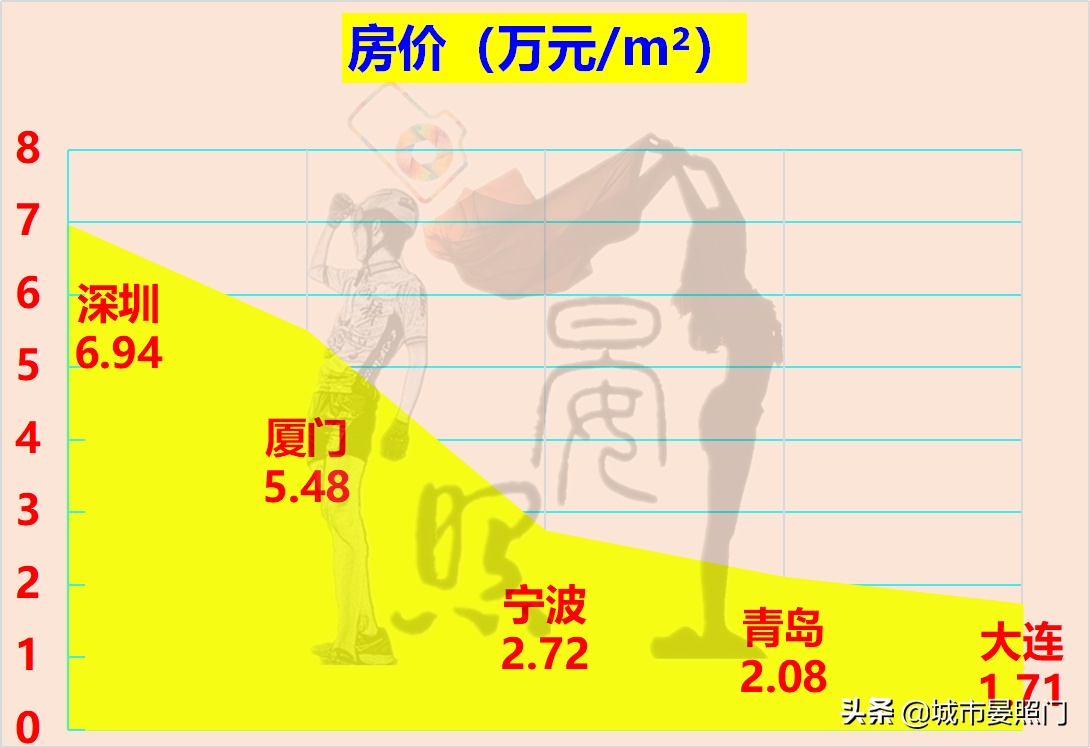 房價可以說是象征一座城市的“品牌價值”,以及綜合經濟發達程度。而高度發達的深圳和廈門,由于面積均低于2000km2,且山多,也就自然理所當然第在同檔次城市中,擁有“鶴立雞群”的房價了,其中,深圳是全國第一高房價,而廈門則是非一線城市中第一高房價,甚至超過了一線城市廣州和富可敵國的杭州。相比之下,并不則僅有廈門一半不到,大連更是低于2萬,不足深圳的四分之一。