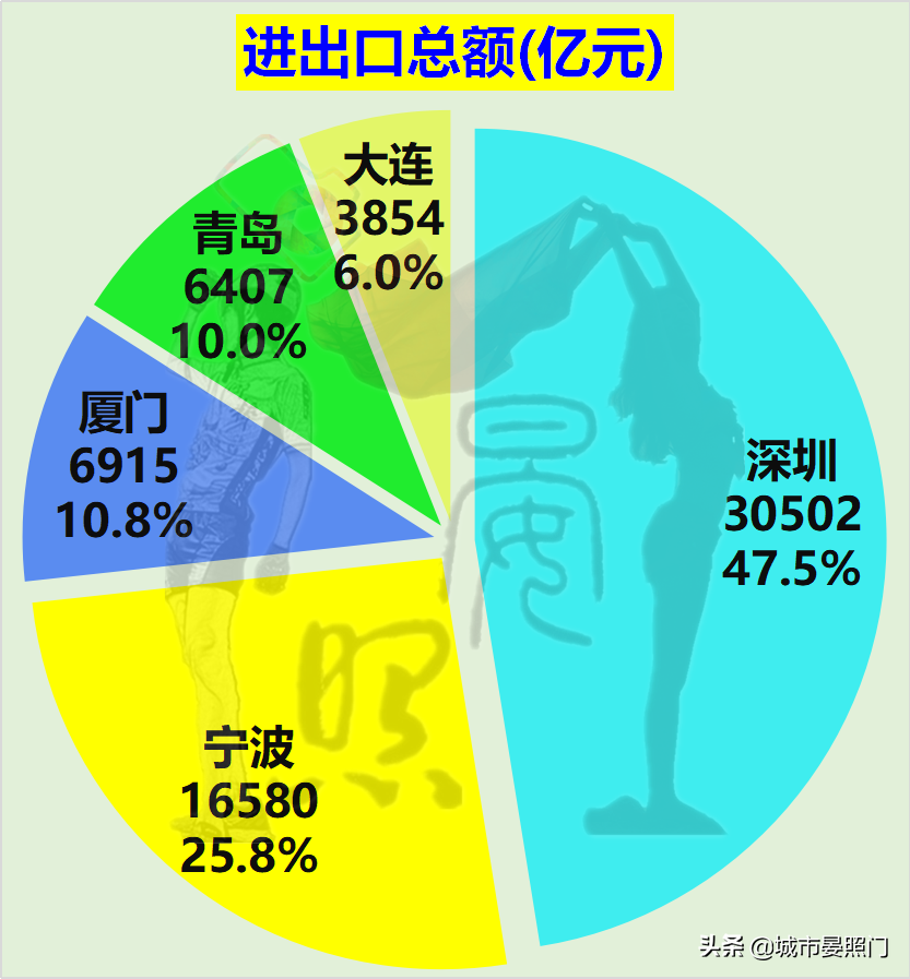 在象征城市國際經濟核心競爭力的外貿指標上,深圳再次以絕對優勢問鼎,這也是深圳第四次在五大計劃單列市中的相互占比超過40%,以及第三次超過47%。反觀進出口墊底五城的大連,則為深圳的12.6%,更是第四次在單列市中占比低于10%。