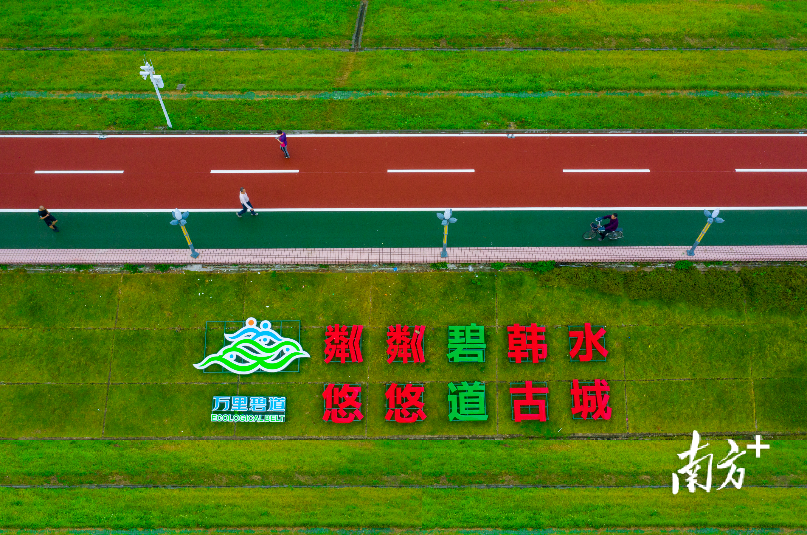 走在韓江邊,萬里碧道的標志牌顯眼突出。 林文強 攝