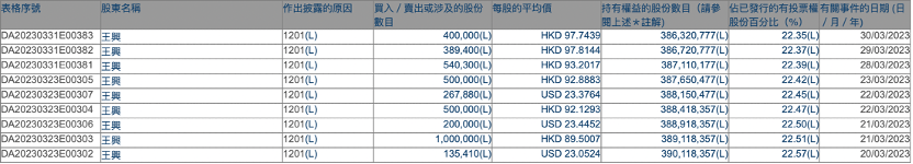 從3月28日到3月30日,王興已經連續三個交易日減持理想汽車,合計減持133萬股,交易均價分別為93.2港元、97.81港元、97.74港元,合計套現約1.28億港元,持股占比由22.42%降至22.35%。