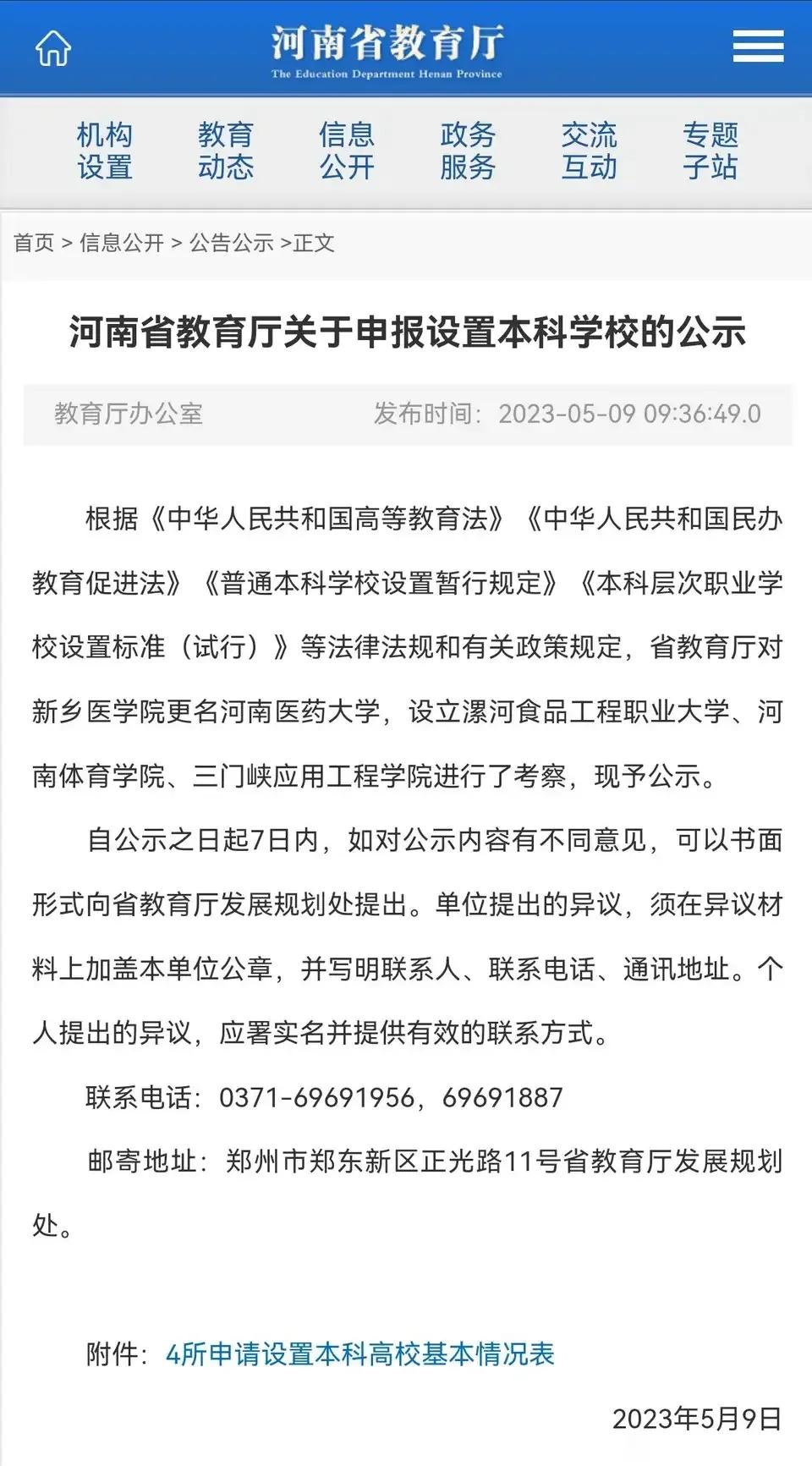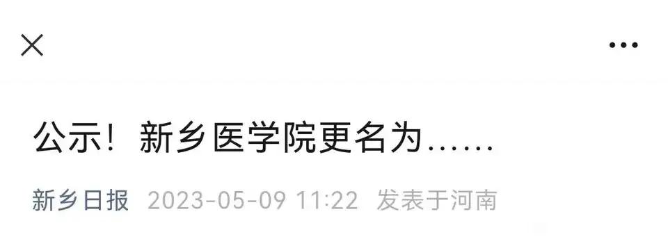 2023年5月9日上午,河南省教育廳發布消息,河南本省的知名醫學高校——新鄉醫學院擬更名為河南醫藥大學。