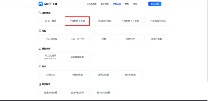 可以打開網站,進入主頁面,點擊進制轉換下面的【二進制轉十進制】