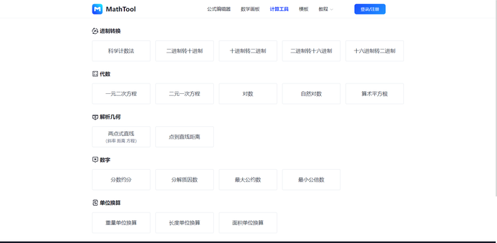 一個功能強大的免費進制轉換網站,支持各進制相互轉換、代數、解析幾何、單位換算等等,只需要點擊需要的功能,進入之后輸入需要轉換的數字,系統就會自動輸出,能夠大幅度的節約人力和時間成本,為辦公學習帶來很大的便利?