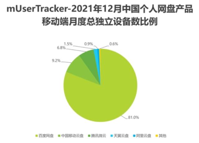 目前行業尚有百度網盤、阿里云盤、騰訊微云等十余個品牌,不過據艾瑞mUserTracker監測2021年12月的數據顯示,個人網盤市場集中度趨于固定,移動端Top5服務商月獨立設備數比例高達99%,符合互聯網市場成熟期常見的“二八定律”。