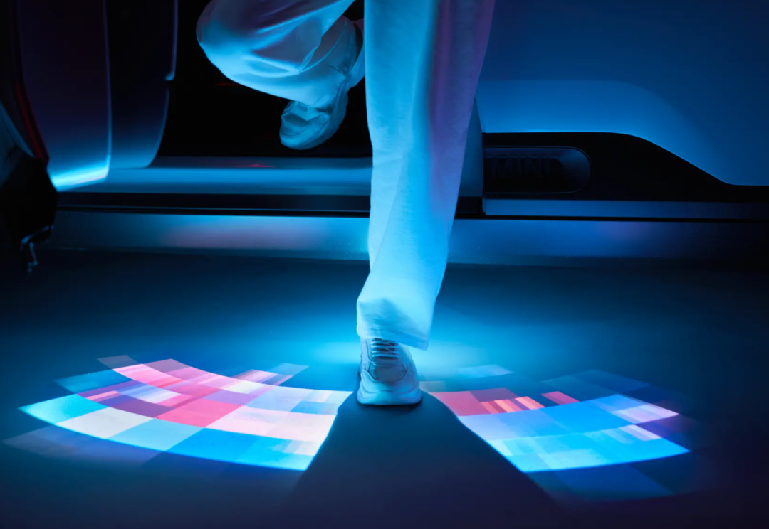 科技氛圍方面,MINI順應了當下智能互聯的潮流,引入許多了新潮科技。當你接近車輛時,車前的光云將隨著人移動,距離車越近,光云越亮。同時,車輛外置揚聲器相應發出互動聲效,強度隨著人與車的距離漸行漸強,儀式感十足。