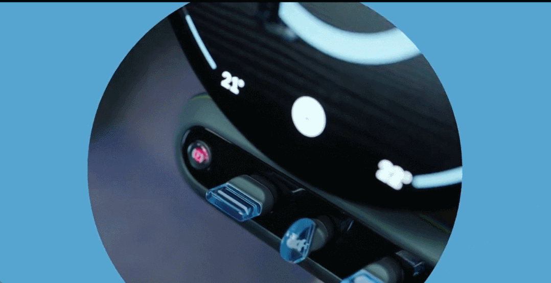 接下來咱們再來看看新車的內飾,其設計十分簡潔,沒有傳統儀表盤、排檔座,也沒有太多實體按鍵,僅保留了一臺懸浮式造型的圓形 OLED 中央顯示屏,來完成大多數交互操作,這樣的設計尚屬業內首次。