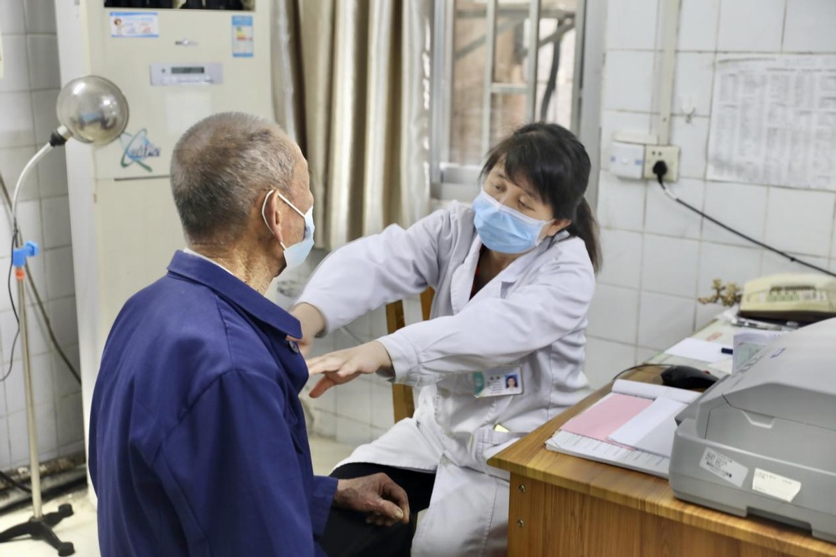 腫瘤內科二病區(胸部)主任曹軼林為患者進行問診