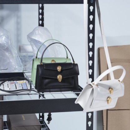 經典魅惑靈蛇此次化身前衛代表,為寶格麗經典款式注入嶄新活力。聯名系列均采用經由Alexander Wang重新詮釋的復古蛇首造型搭扣, 魅惑蛇首在靈感碰撞之下盡顯前衛時髦態度。雙層翻蓋肩包,內里配有實用口袋,展現強大功能性;三層翻蓋單肩包,將蛇首搭扣延伸為三只,猶如"護身符"令該款手袋別具魅力。