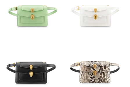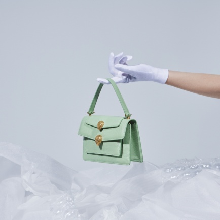 該系列主打單品是帶有兩個蛇首搭扣、兩條可拆卸肩帶和一個可拆卸手柄的Belt Bag,可纏繞于腰間、斜挎或單肩背,變幻出各種創意造型。此次寶格麗與Alexander Wang合作系列更推出中國限定款,薄荷綠色蜥蜴皮外觀,多種佩戴方式,將百變造型演繹成你的"獨家記憶"。