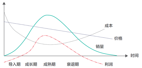 產品生命周期曲線圖(銷量、價格、利潤、成本)