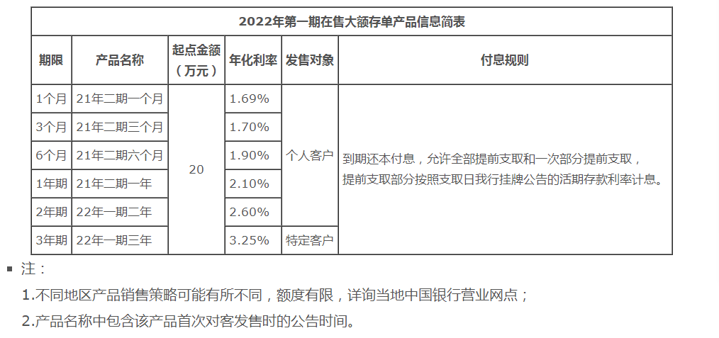 中國銀行將于2022年4月25日起發售2022年第一期個人大額存單,現將有關事宜公告如下: