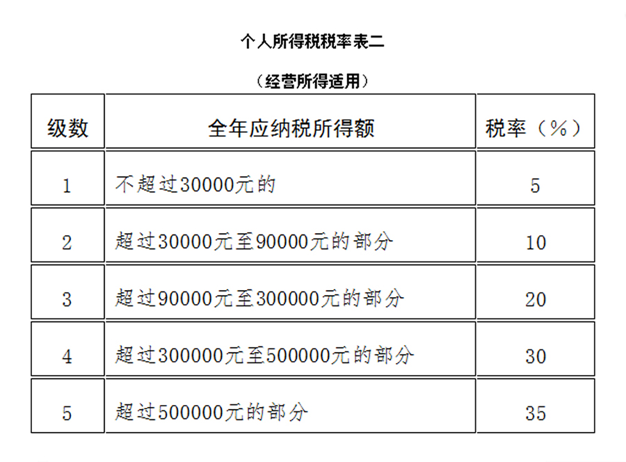 (二)經營所得,適用百分之五至百分之三十五的超額累進稅率(稅率表附后);