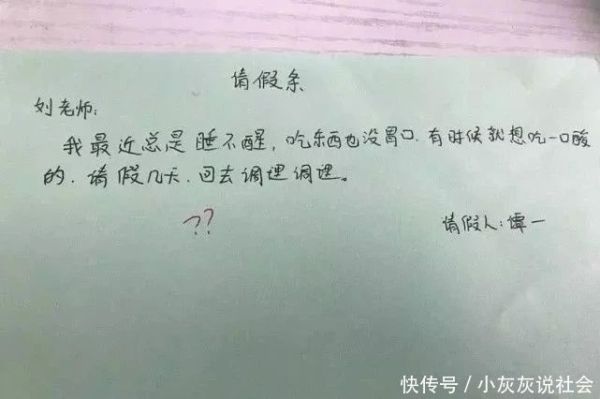 小學生奇葩請假條,一個比一個奇葩,家長看了也無奈!請假條這種東西,在日子里習以為常,上學的時分請假需求請假條,上班了請假仍是需求請假條。在許多請假條之中,最有意思最奇葩的當屬百無禁忌的小學生了。這幫小學生們可謂是花樣百出,各種奇葩請假條不斷出現,孩子們寫出來的請假條,也充滿想象力。