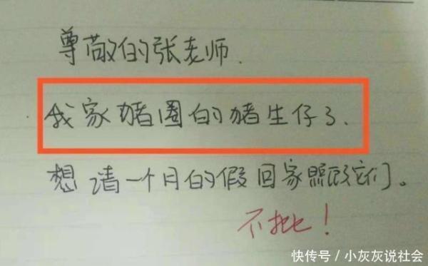 現在很多農村孩子家都還養著豬,因為自家可以吃,還可以賣錢攢學費,所以在一年到頭的時候,都會有出現各種“奇葩”的請假條,比如自家的豬生崽了,自己想要請假一個月回去照顧。小小年紀知道體恤父母是件好事,但是你還沒有豬高,確定照顧的好豬?
