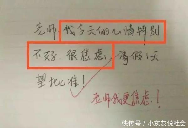 這位同學就更加的簡明扼要了。劉老師:我最近總是睡不醒,吃東西也沒有胃口,有時候就想吃一口酸的,請假幾天,回去調理調理。真可怕,這個孩子的癥狀如果再加上她有一些反胃的感覺的話,那莫不是就是有了吧,真是太可怕了,老師也是一臉懵逼啊。直接就給了兩個問號,表示不理解。