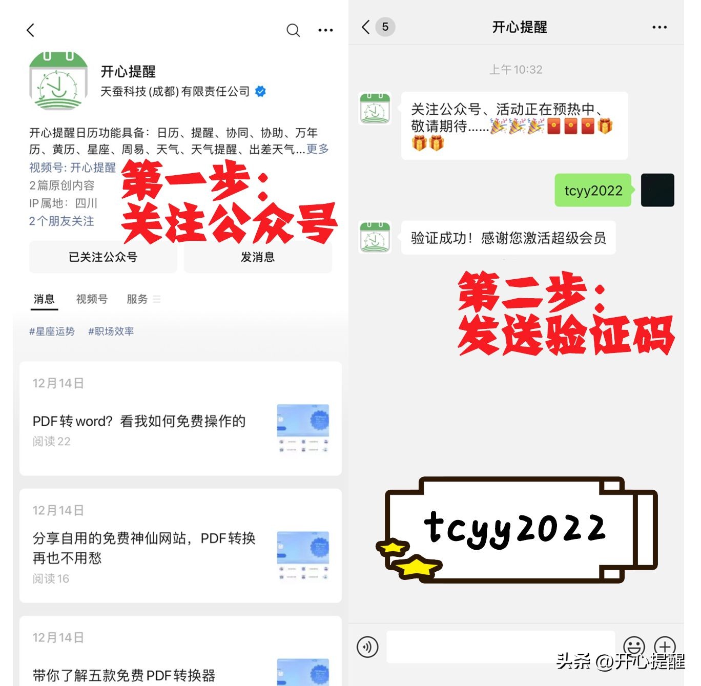 這是一款最新的PDF轉換器工具,功能齊全、操作簡單,它支持編輯文件中的文本內容。這款軟件完全免費,無文件大小、數量限制,所有功能都可以任意使用。關注公眾號“開心提醒日歷”,如下圖所示進行操作,系統就會自動贈送超級VIP,之后也不需要花錢續費,所有功能都可以免費使用,滿足學習、辦公的一切需求。