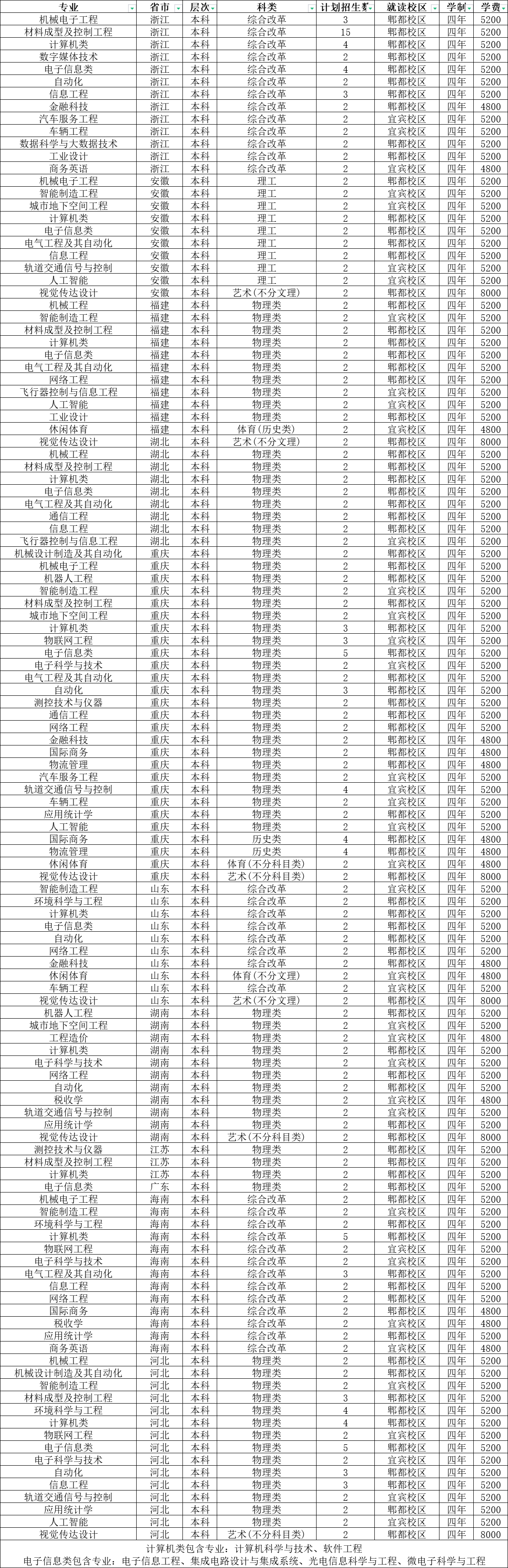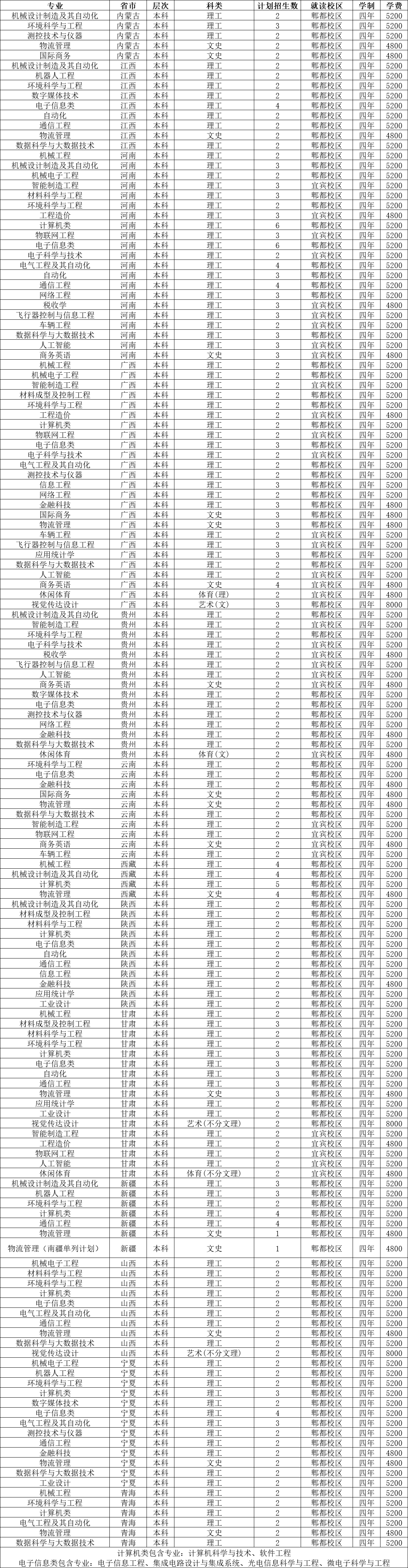 理工類招生人數較多的專業(宜賓校區):電子科學與技術106人、稅收學111人、車輛工程108人。