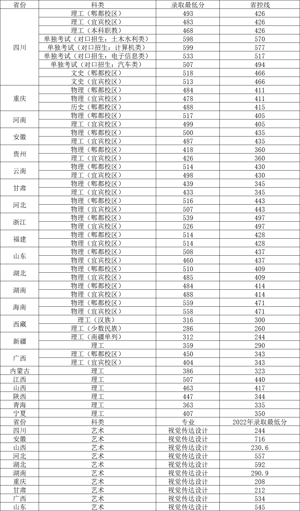2022年在重慶本科批物理類郫都校區最低484分、歷史類488分,宜賓 校區理工類最低分478分。