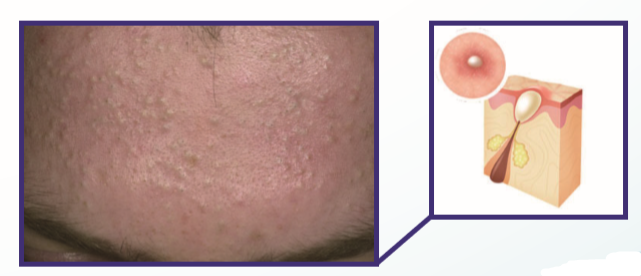 而被分解的皮脂變成了游離脂肪酸,同時趨化炎癥細胞聚集引起毛囊損傷,促炎脂質和角蛋白被擠壓進入表皮或真皮淺層,從而導致炎癥性丘疹的形成。