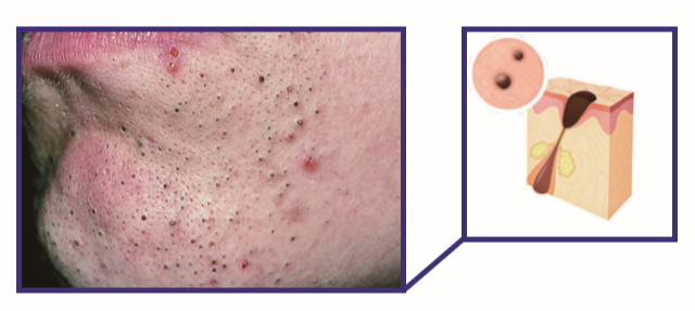 黑頭粉刺是開放性粉刺,意味著毛孔是張開的,由于堆積的角質形成細胞、脂質氧化而具有黑色外觀。