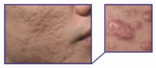 在結節或囊腫被治好之后,就會有瘢痕產生,一般分為凹陷性瘢痕(俗稱痘坑)和增生性瘢痕。