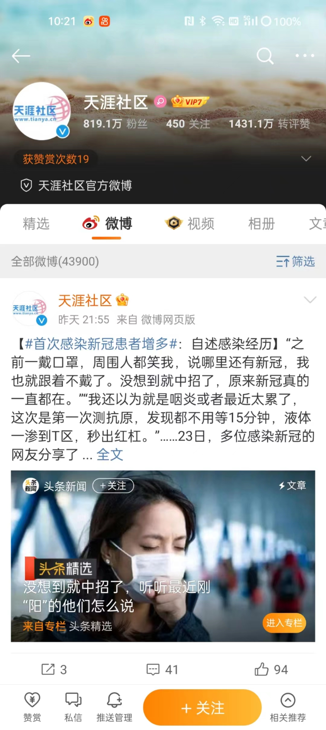 此外,觀察者網留意到,微信公眾號“天涯社區”的最新更新時間是4月25日17時許。