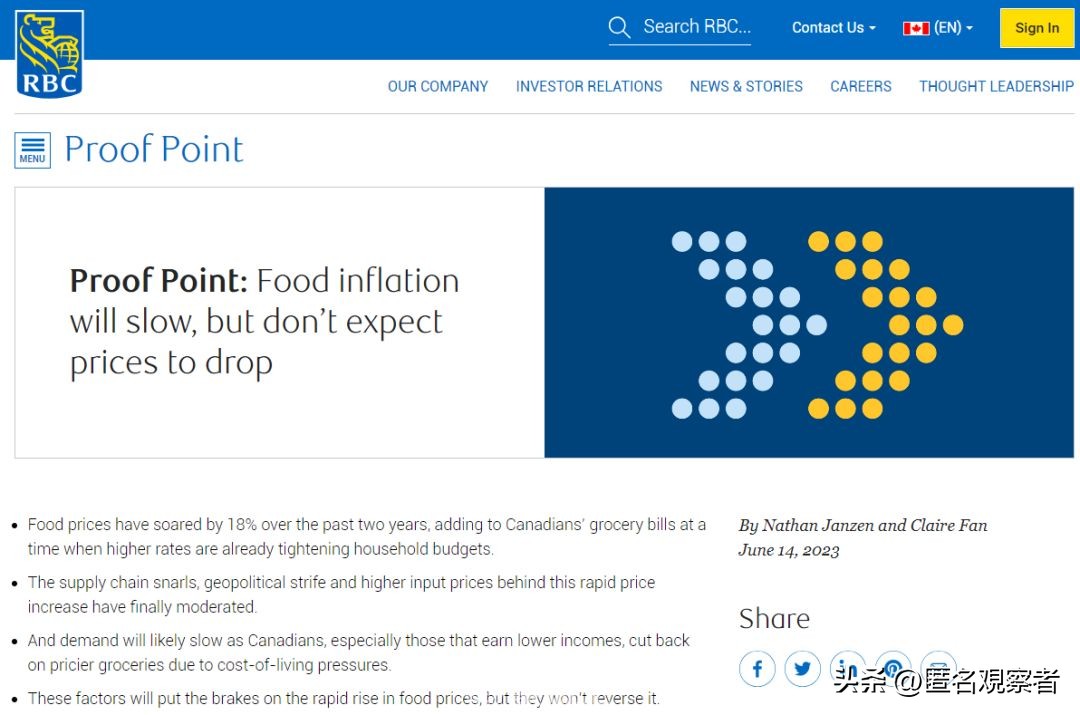 RBC皇家銀行表示,在過去兩年中,僅食品價格就飆升了18%,但該銀行堅稱價格快速上漲背后的供應鏈混亂、地緣政治沖突和更高的投入價格現在終于有所緩和。