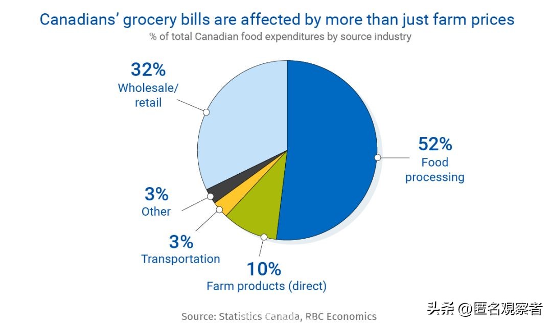 雖然看起來加拿大人在食品上的花費比以往任何時候都多,但事實是,自2021年以來,用來購買雜貨的錢的價值已經縮水——我們一直在為更少的食物支付更多的錢。圖源:加拿大統計局/RBC銀行