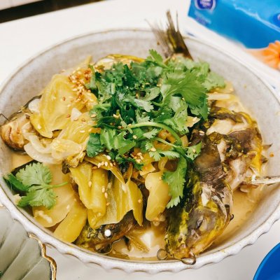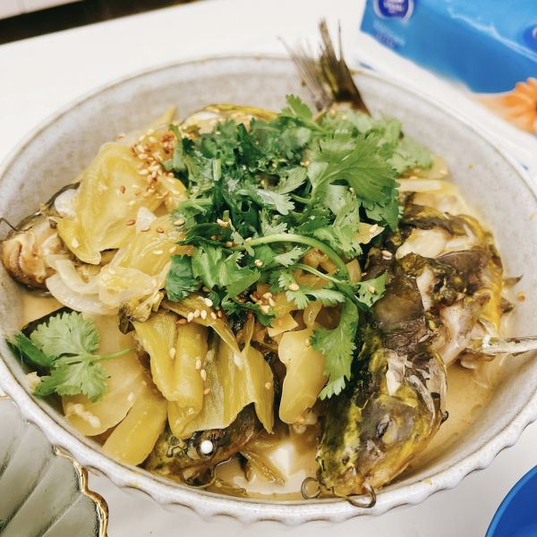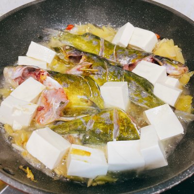 導讀汕頭人非常喜歡酸菜做魚,但不是每一款都適合,還會加梅讓魚更酸甜,但我們煮的水會比較少~By 眉飛色舞的蝦皮很長毛用料黃骨魚 3條澄海酸菜 250g豆腐 一盒姜 適量胡椒粉 適量鹽 適量蒜 3瓣料酒 適
