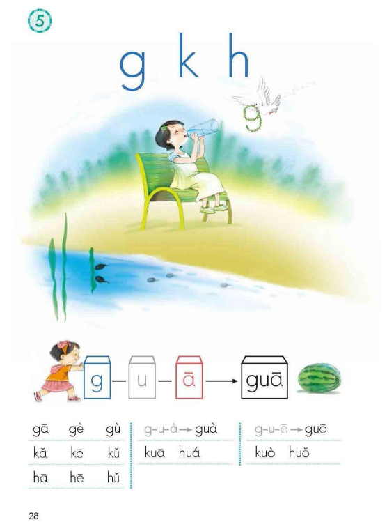 g :舌根抬起,頂住軟腭,感覺不到氣流沖出,發的音跟小鴿子的“鴿”相似。