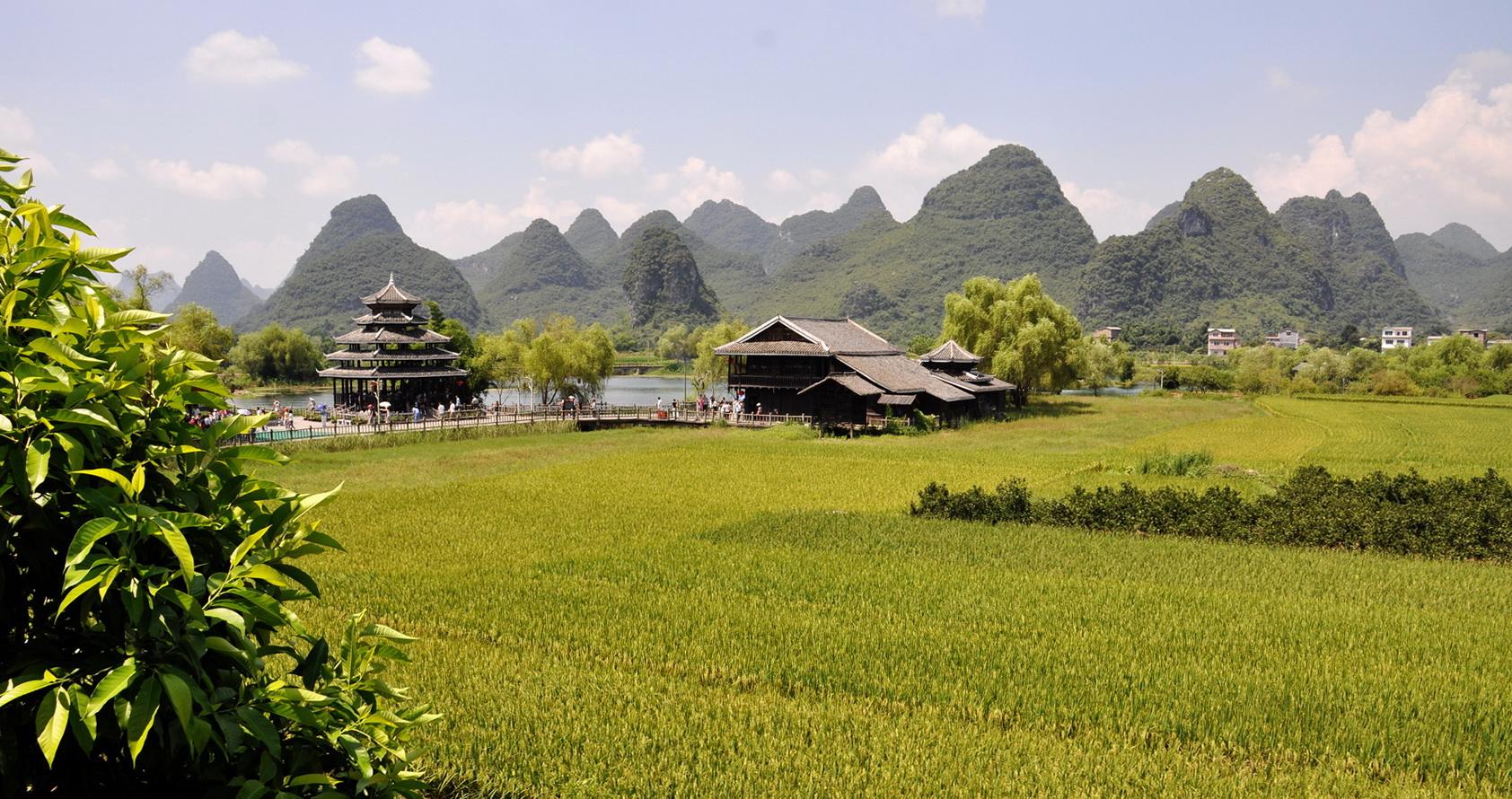土地平曠,屋舍儼然,有良田美池桑竹之屬。阡陌交通,雞犬相聞。