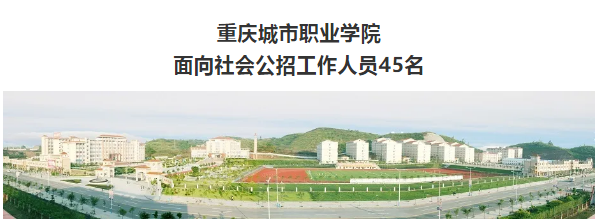 導讀13日,重慶人社微信公眾號發布招聘信息,稱,重慶城市職業學院面向社會公招工作人員45名。其中包括航空學院專任教師、大數據學院專任教師等,專業要求包括市政工程、工商管理、航空航天、兒科、護理、音樂舞蹈、