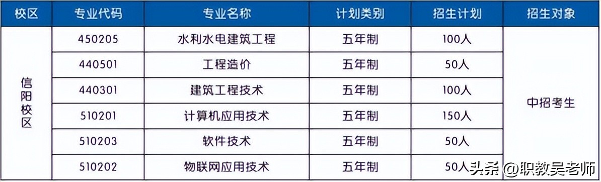 五年一貫專業:2022年只在信陽校區招收五年制專業