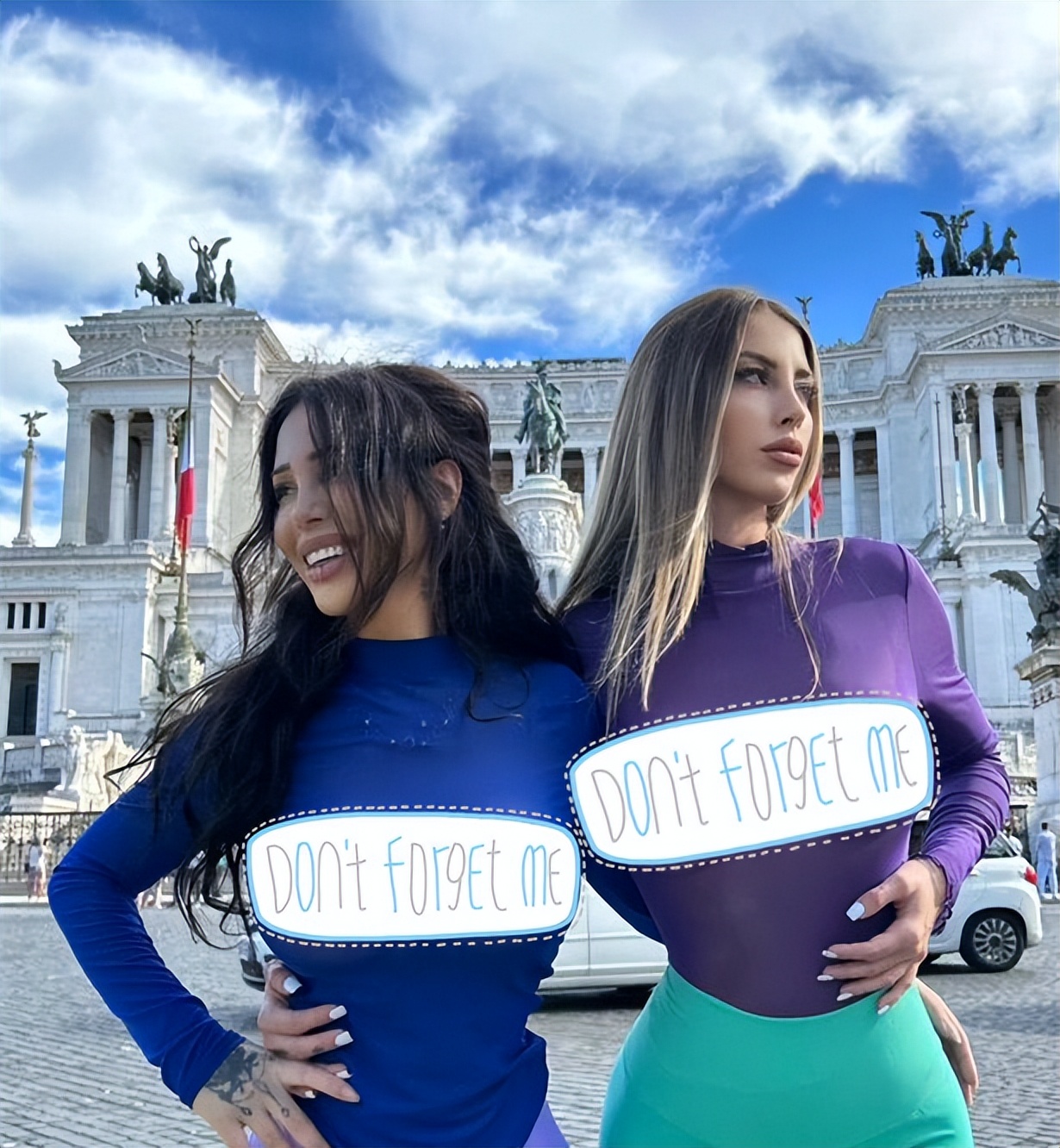 從阿萊西婭分享到Instagram上的照片可以看到,她和路易莎都用兩條黑色的吊帶遮住上身,并對著鏡頭擺出各種姿勢,完全不顧忌路人的眼光。