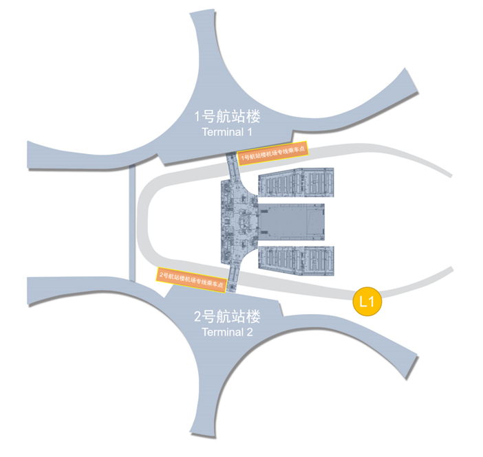 天府國際機場一號航站樓乘車點:一號航站樓側L1層