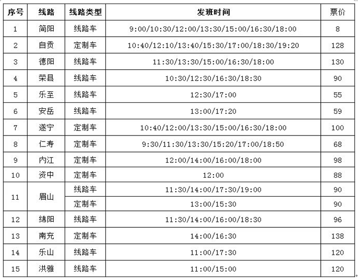 (注:線路發班時間及頻次將根據實際情況調整,請以實際票務信息為準。)