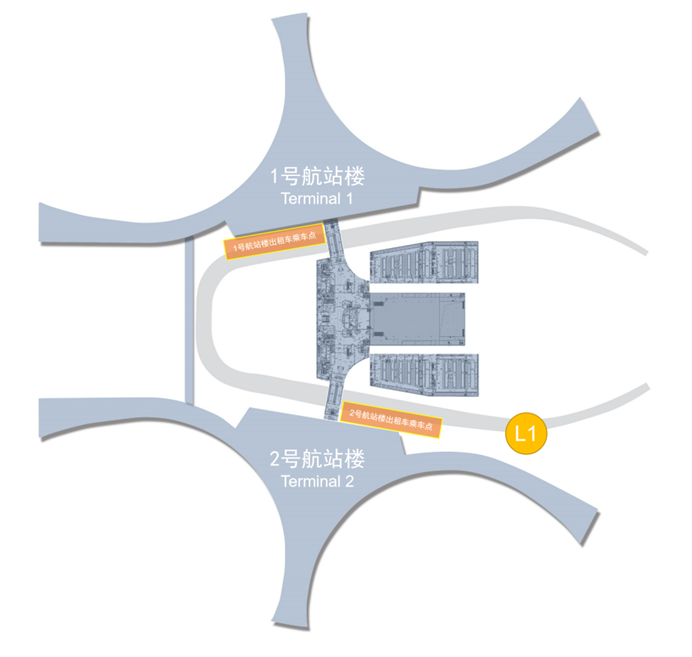 一號航站樓出租車乘車點:一號航站樓側L1層
