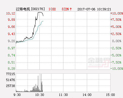導讀金融界網站9月5日訊 今日江特電機開盤報13.8元,截止13:35分,該股漲10.01報15.16元,封上漲停板。昨日該股凈流出金額1561.98萬元,