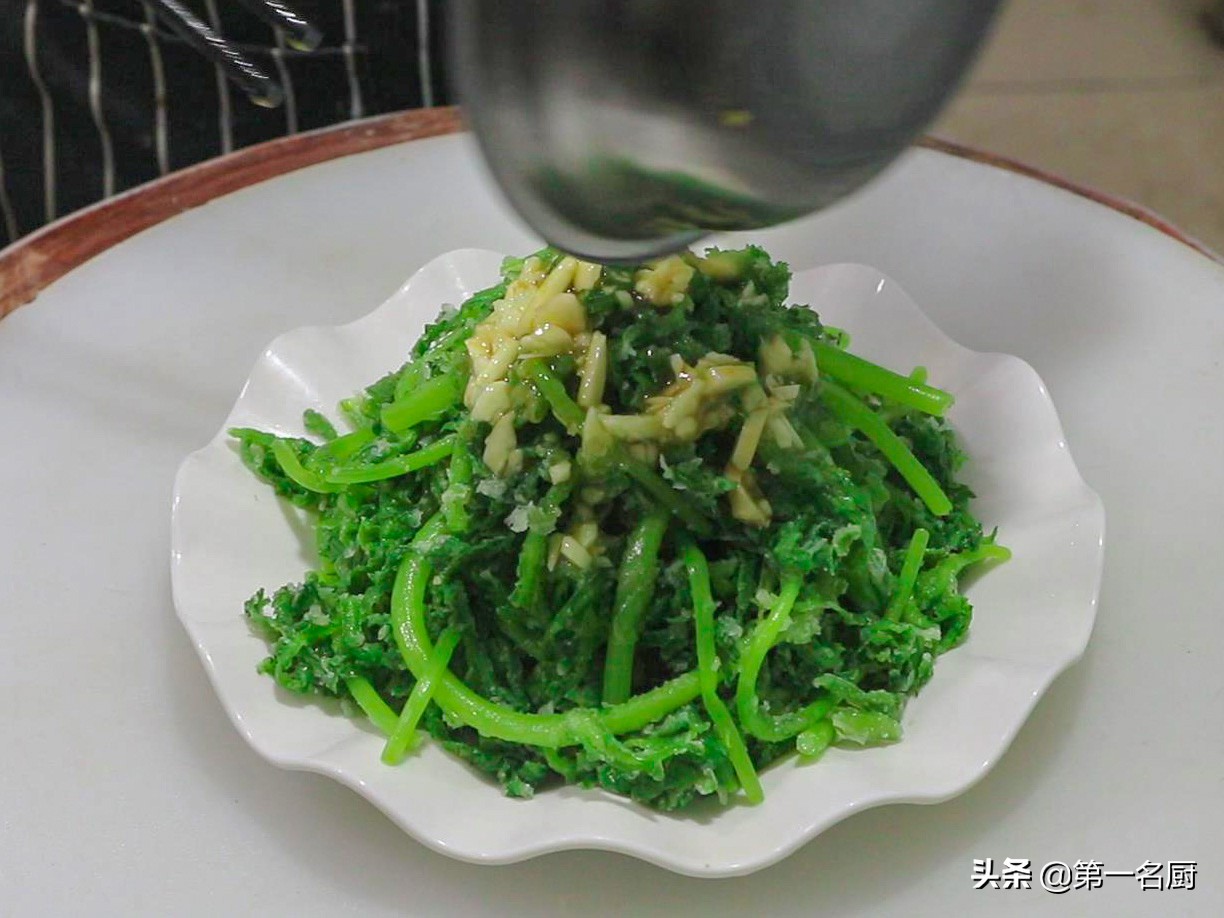 最后把料汁均勻的澆在蒸好的茼蒿上面。