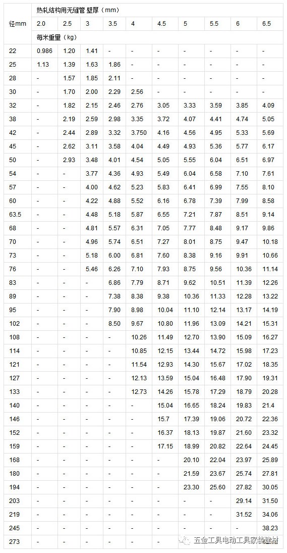 無縫鋼管理論重量表大全:
