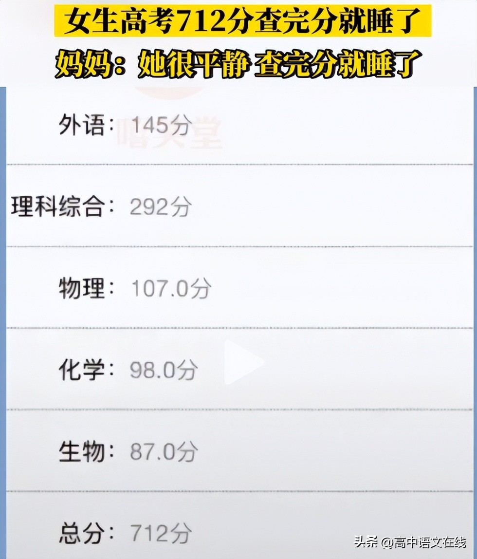 四川成都的考生張藍月,查分712分后淡定睡覺。