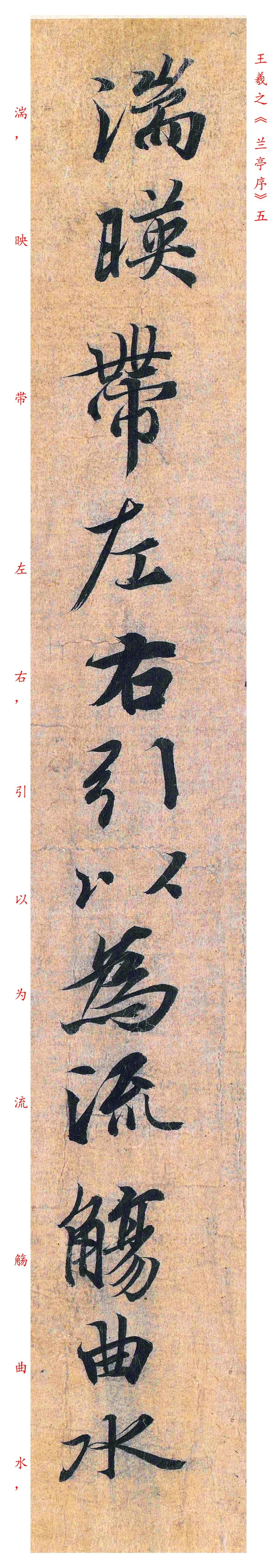 【5】湍/tuān/,映帶左右,引以為流觴/shāng/曲水,